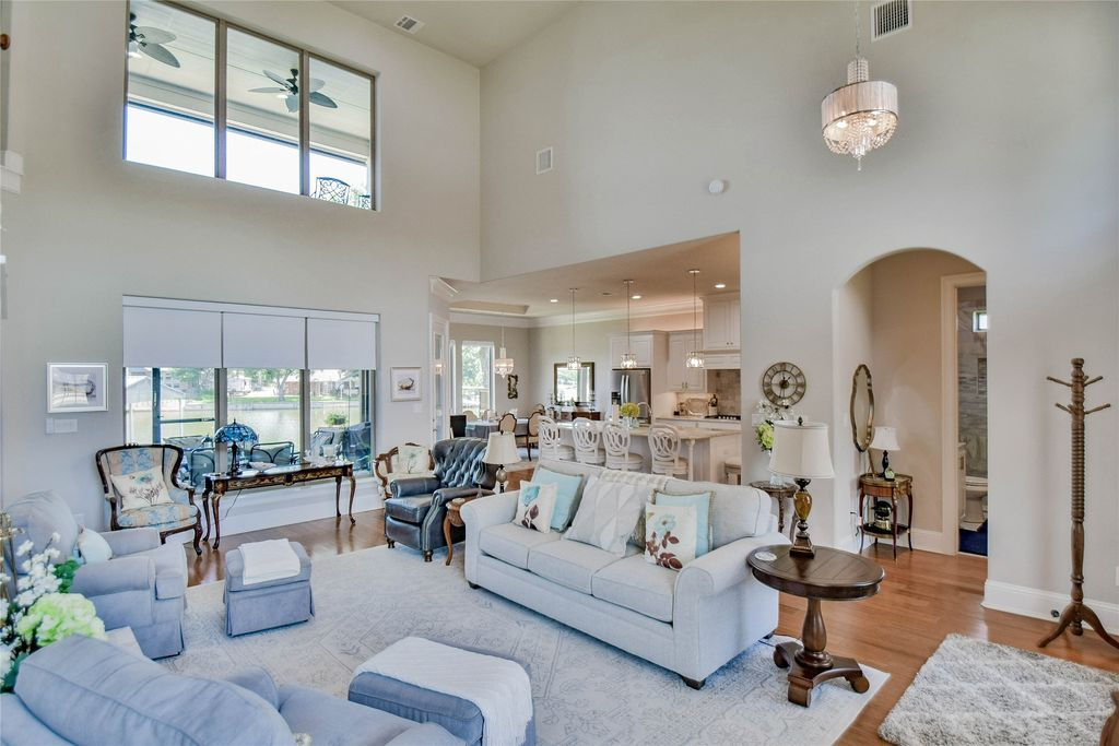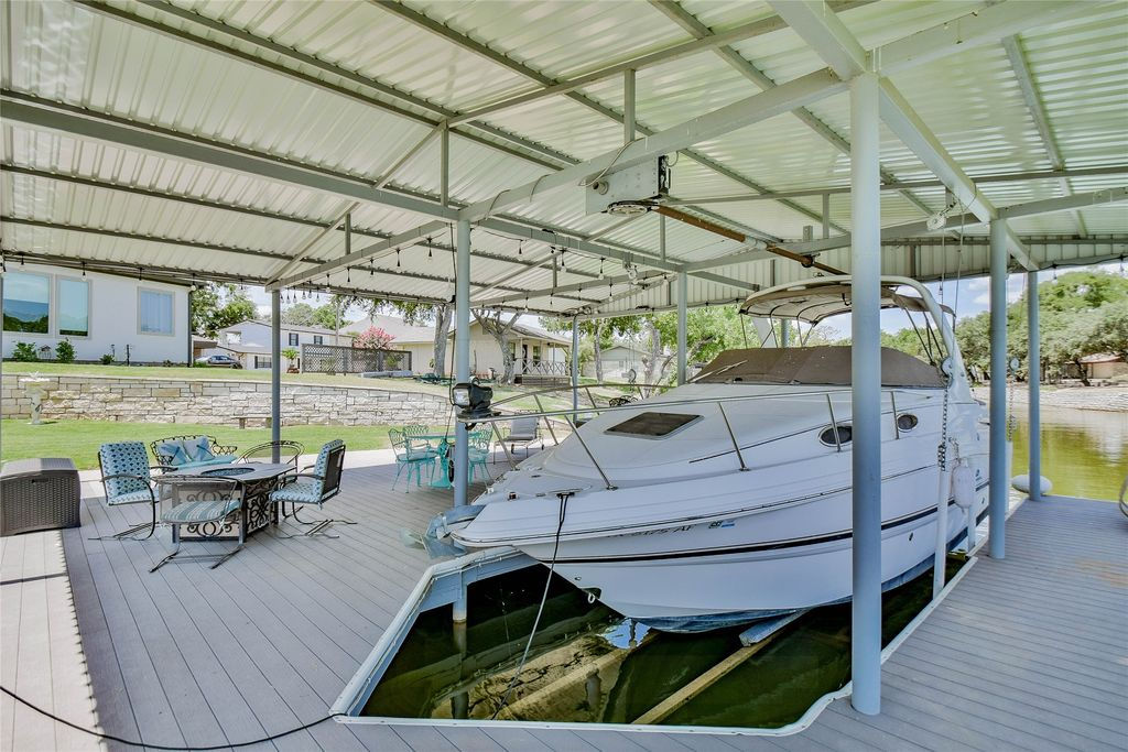 LUXURY MAIN BODY LAKE HOUSE. Situated at the end of peninsula this stunning white stucco & rock custom 3 bed 3 bath features, beautifully chic high-end fixtures, massive vaulted ceilings, iron staircase, marble & bamboo flooring, Gas fireplace & multitude of windows with lake views throughout. Prepare meals in your kitchen with gas cook top, DBL oven, island, abundant white cabinetry, walk-in pantry, & granite counters. Master features a romantic ensuite bath w- large walk-in shower, separate vanities& jetted showpiece bathtub. Entertain guests upstairs in media room that boasts large richly stained oak wet bar w-sink, cooler& keg tap. Composite floored balcony to enjoy the view & storage area. Sip coffee in screened patio or enjoy lake on large boat dock w-lift & storage. This dream home is conveniently located just 4 miles from historic Granbury Square, shopping, & restaurants.